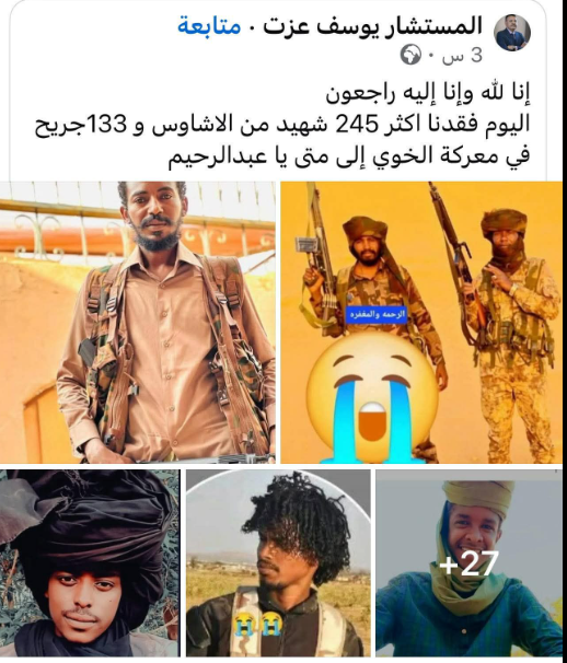 Les forces de soutien rapide (FSR) du général Hemetti et l'armée soudanaise soutenue par ses alliés se sont affrontées de manière violente aujourd'hui à AlKhouwey. Le porte-parole des FSR, le général Alfatih, et le conseiller des FSR, M. Tibek, ont déclaré avoir repris le contrôle de la ville stratégique d'AlKhouwey. Des images ont montré que les combattants de FSR étaient présents dans la ville. Dans un tweet, Mini Arko Minawi, gouverneur de la région du Darfour, a affirmé que son camp a remporté une victoire éclatante : "Les forces armées, les forces conjointes ainsi que la résistance populaire ont prouvé une fois de plus qu'elles sont capables de faire face à n'importe quel mercenaire se cachant dans notre pays". Des sources concordantes ont confirmé une brève présence dans la ville d’AlKhouwey par les FSR suite à une grande offensive. Mais il semble que l'armée et ses alliés ont lancé une contre-offensive et repris le contrôle de la ville. Alors que le journal proche de l'armée soudanaise Abou woudaha News a estimé à 700 le nombre de combattants des FSR qui ont trouvé la mort aujourd'hui, Youssouf Izat, l'ancien conseiller du général Hemetti a déploré sur sa page Facebook la mort de 247 combattants de FSR. D'après diverses sources, les affrontements d'aujourd'hui ont entraîné la mort de plus de deux cent quarante personnes des deux camps.