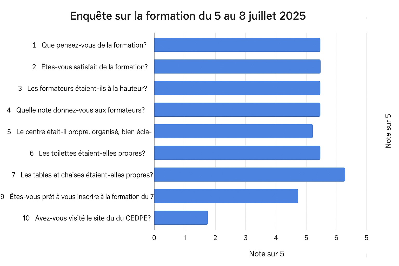 - Satisfaction moyenne autour de 4/5, ce qui témoigne d’un bon niveau d’appréciation.
