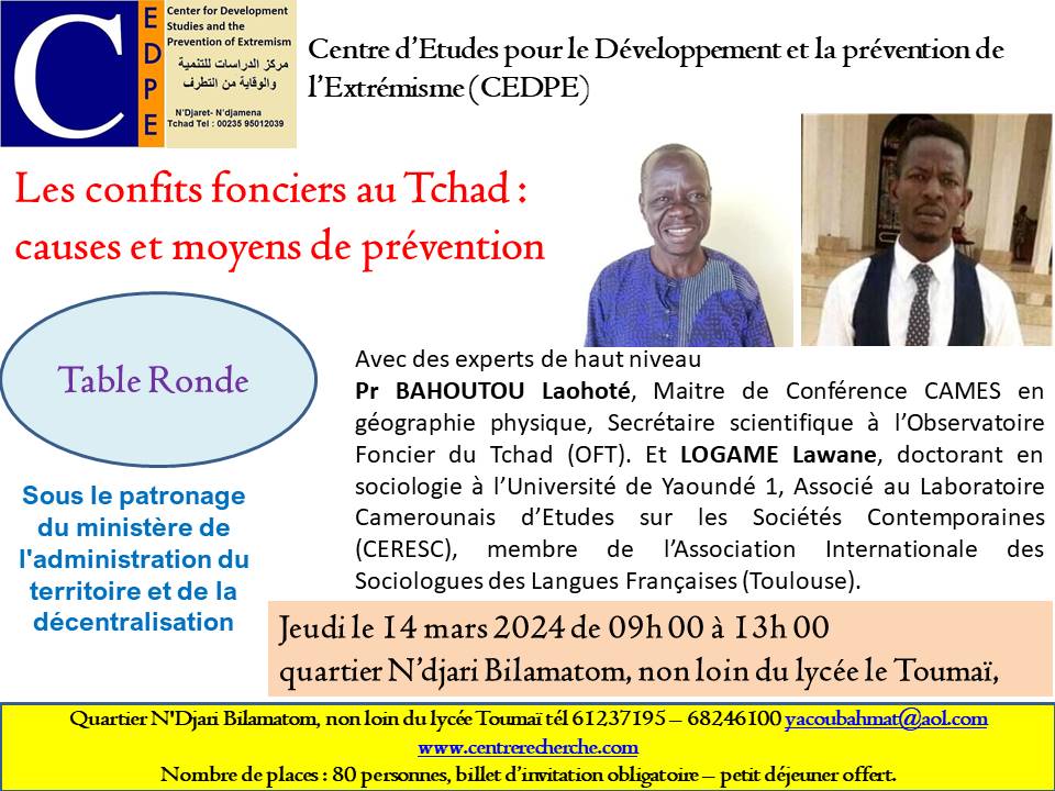Le premier a fait un Bref aperçu sur la géographie physique du Tchad et comment prévenir efficacement les conflits fonciers.